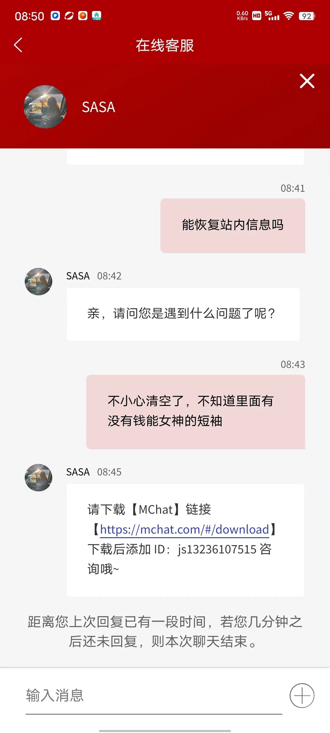 小方法:没有站内信找在线客服说自己站内信全部删除了 还没没来得及看专员联系方式 在线客服一般都会给你联系方式 同理 加了专员问你要站内信截图 直接说全部删除了!看台子查不查吧!自测一下!