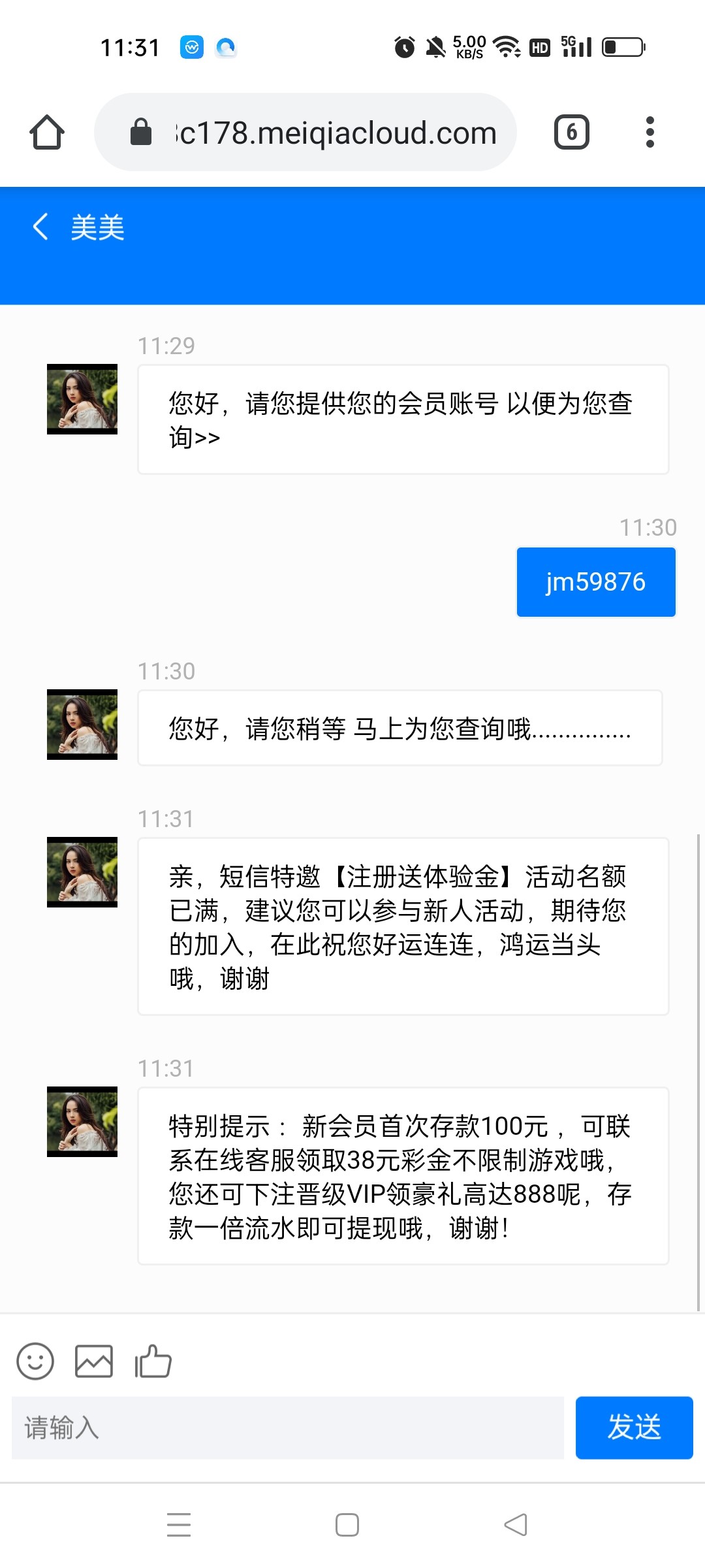 亲,短信特邀【注册送体验金】活动名额已满,建议您可以参与新人活动,期待您的加入,在此祝您好运连连,鸿运当头哦,谢谢