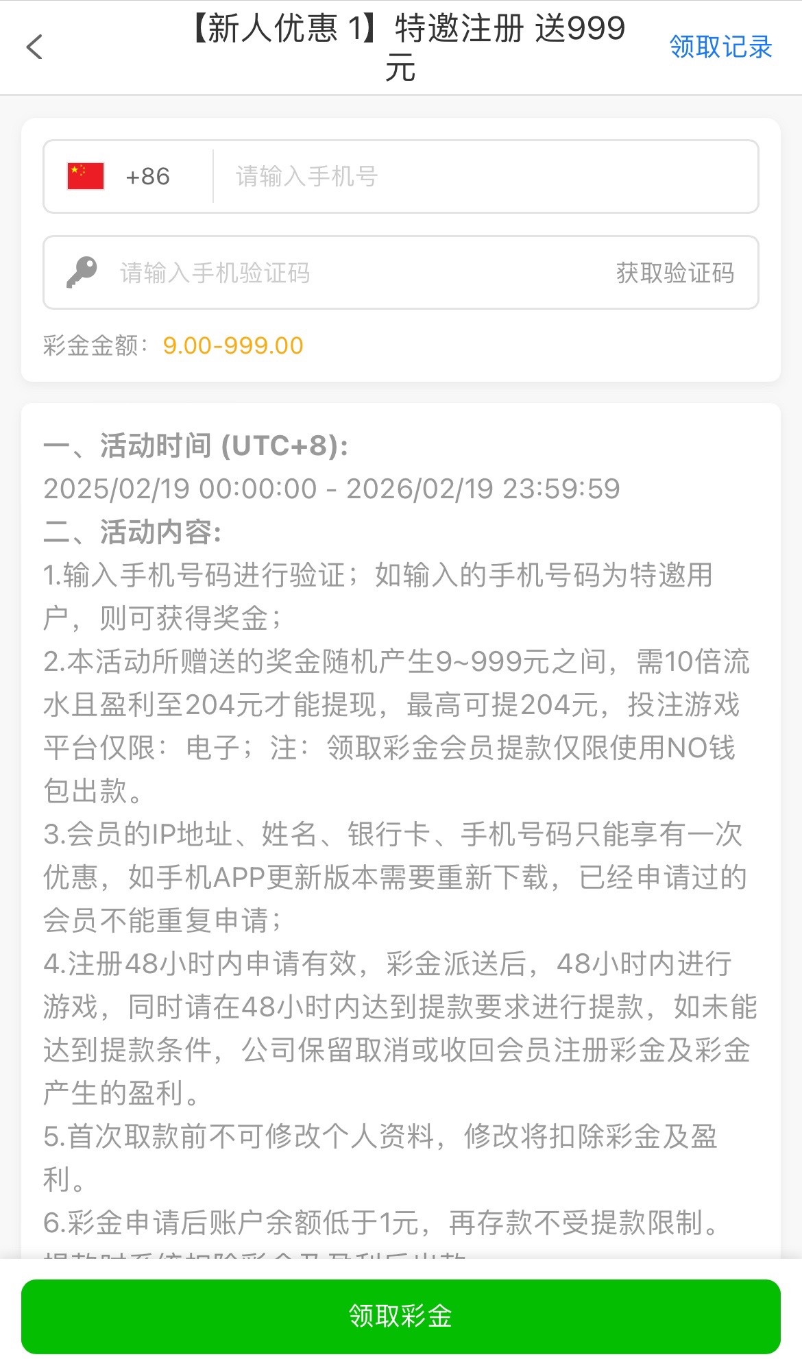 特邀碰瓷,注册完善资料优惠里自助申请,10倍流水,204提现,只能用NO钱包取款