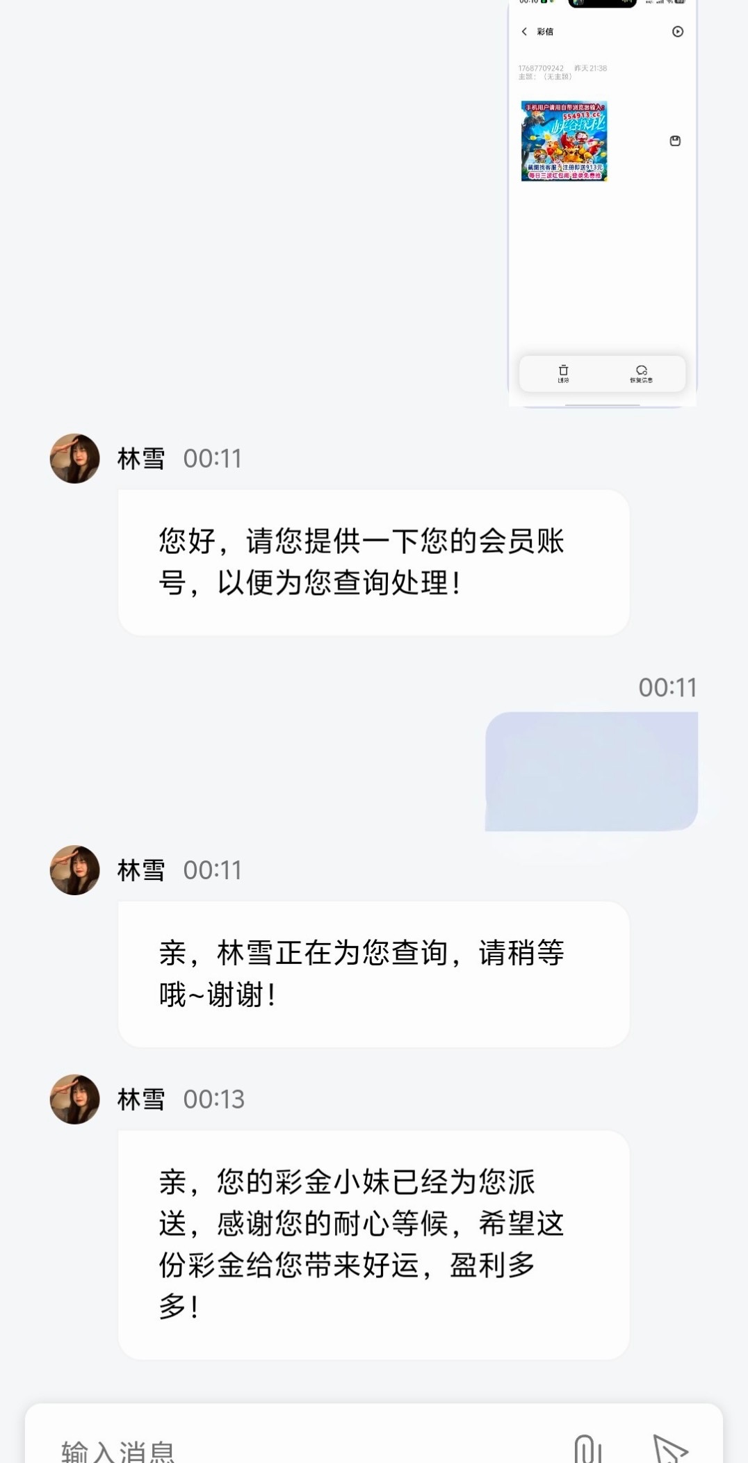 有号的碰瓷彩金,直接发图过去给客服