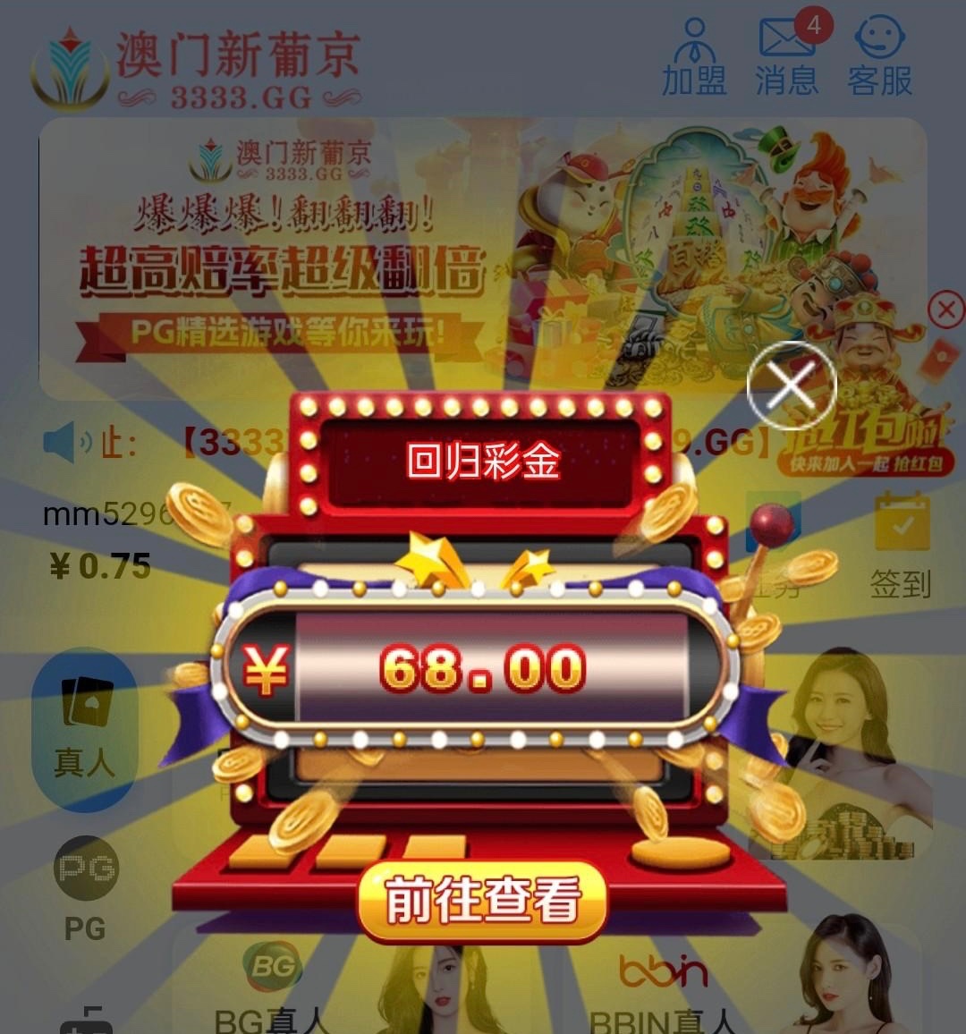 有充值过的兄弟可以登入上去看看有没有弹窗显示