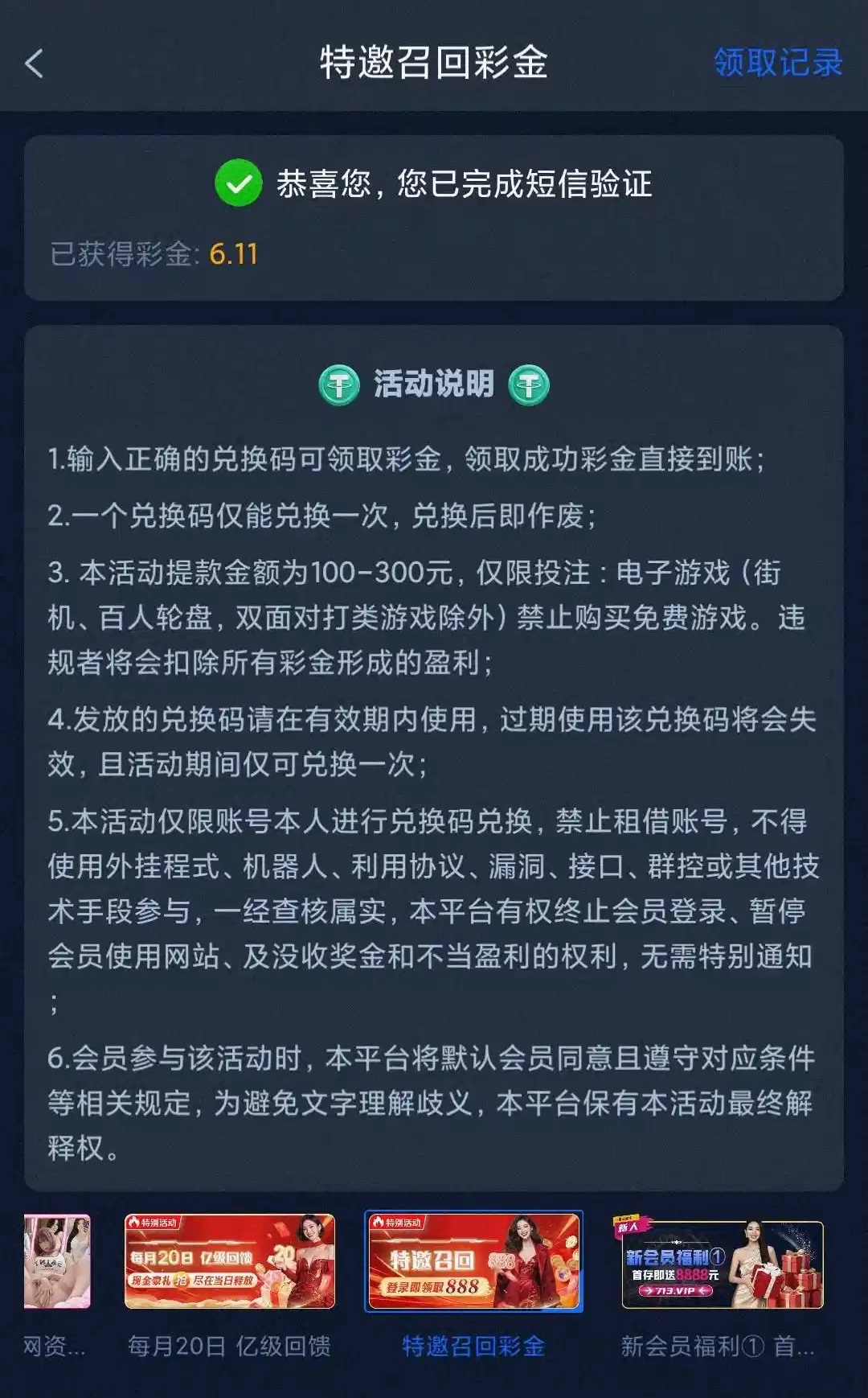 之前是特邀的兄弟可以登入上看看自己在不在回归特邀名单,优惠里自助领取