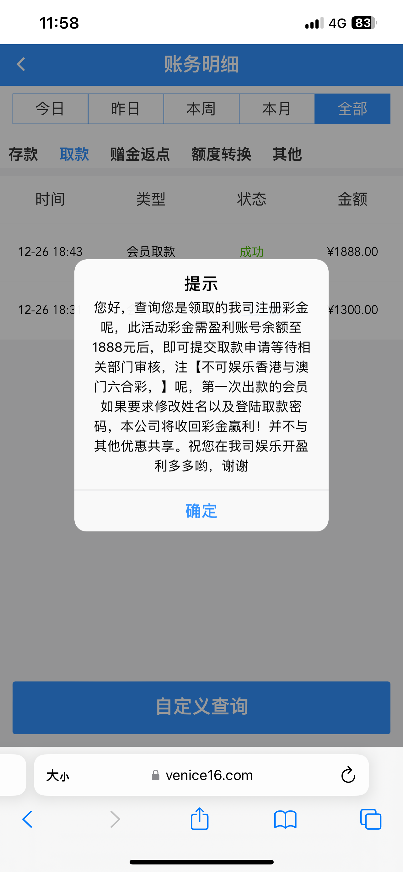 黑比台 回访送18 买了两把狗头一百多 提现封号